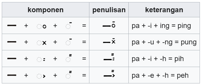 Apabila suatu suku kata menggunakan diakritik vokal yang menempel di sebelah kanan aksara dasar, diakritik -ng dan -h ditulis tidak menempel pada aksara dasar namun diaktrik vokal yang bersangkutan. Penerapannya (menggunakan contoh Batak Karo) dapat dilihat sebagaimana berikut: