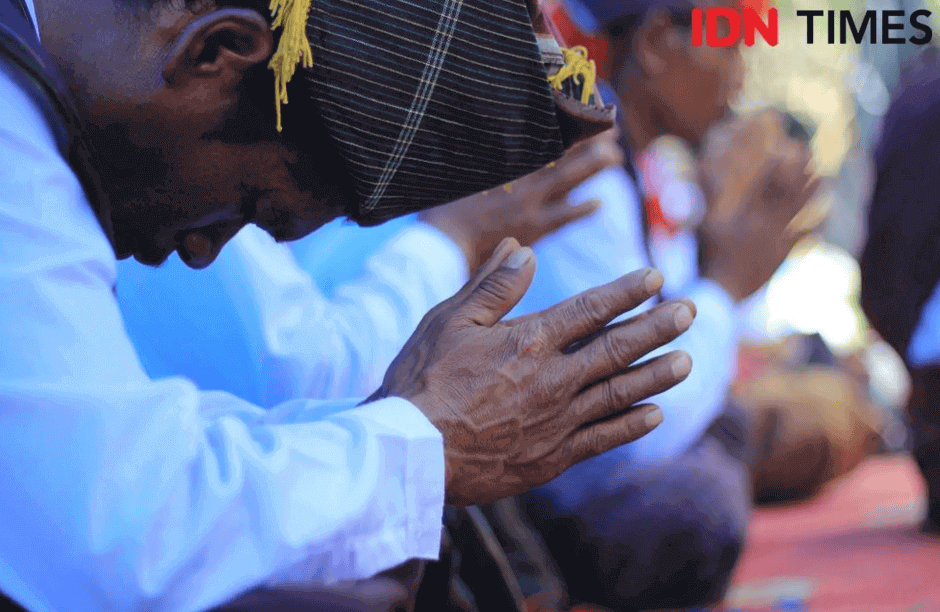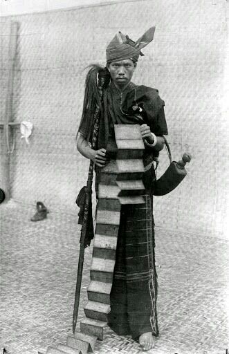 Pendeta atau datu Batak dengan pustaha yang sedang digelar.